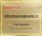 近日,东燃股份公司成功入选“2024年广东省专精特新中小企业公示名单(东莞)”,获得广东省工业和信息化厅对东燃股份“专精特新中小企业”的认定,并颁发相关牌匾。